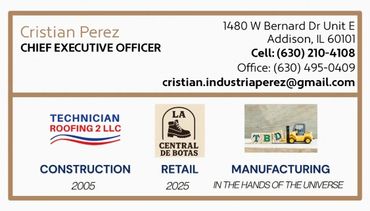 La Central de Botas, An Industria Perez company was incorporated in the State of Illinois on September 2nd, 2025. Created with the sole purpose of catering to workers that rebuild & improve our nations infrastructure